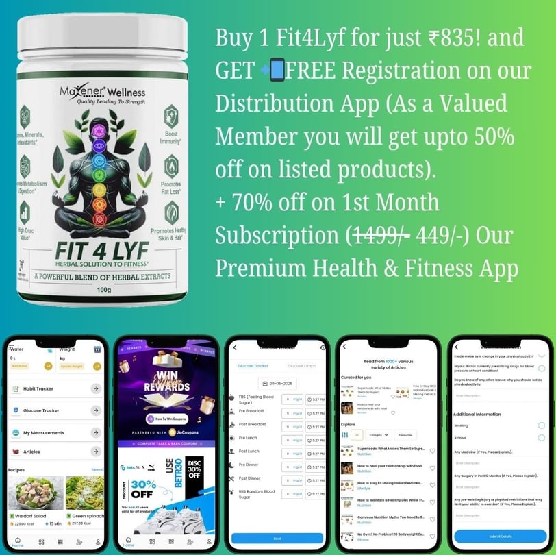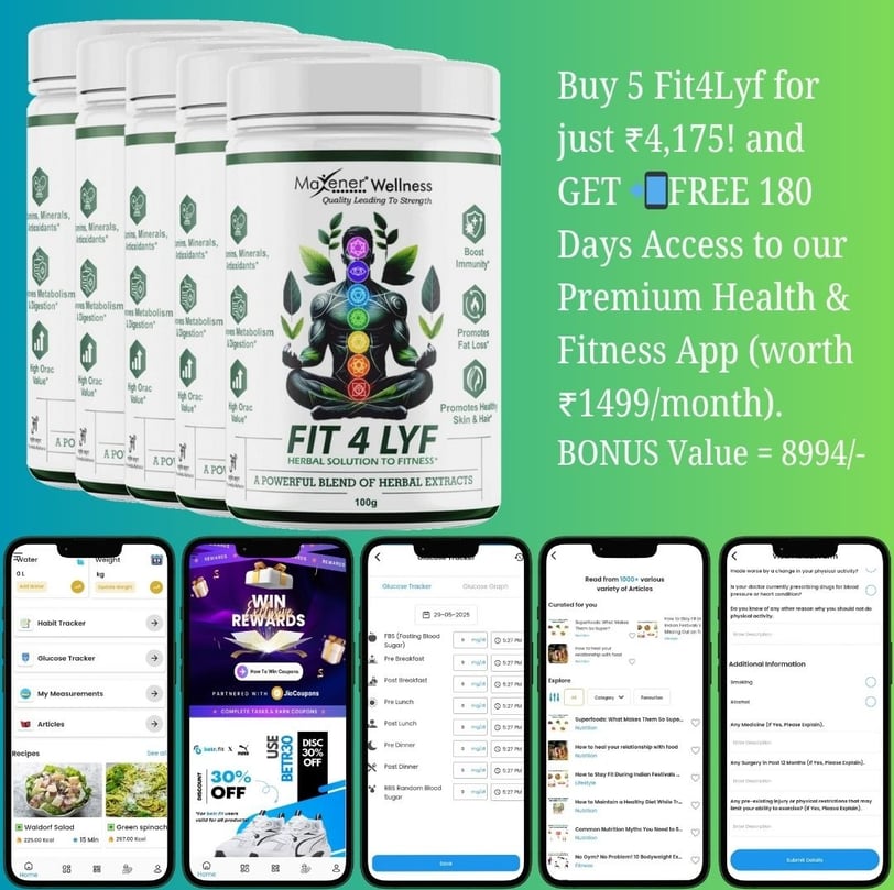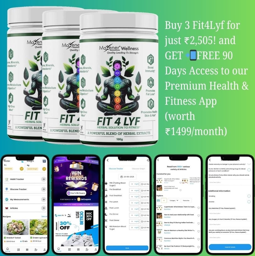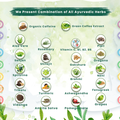 Fit 4 Lyf is a powerful blend of 25+ Ayurvedic herbs, carefully crafted to provide a holistic solution for fitness and well-being. Our unique formula combines the goodness of Aloe Vera, Rosemary, Organic caffeine, Vitamin C B1 B2 B6, Pipali, Sahjan, Shilajit, Gokshura, Oragano, Spirulina, Amla, Green coffee Extract, Brahmi, Noni, Trikatu, Turmeric, Ashwagandha, Fenugreek, Vidanga, Amrita Satva, Pomegranate & Grapes.